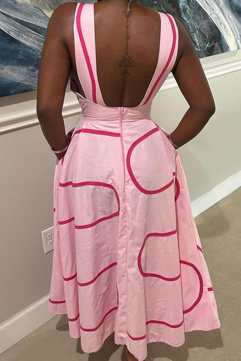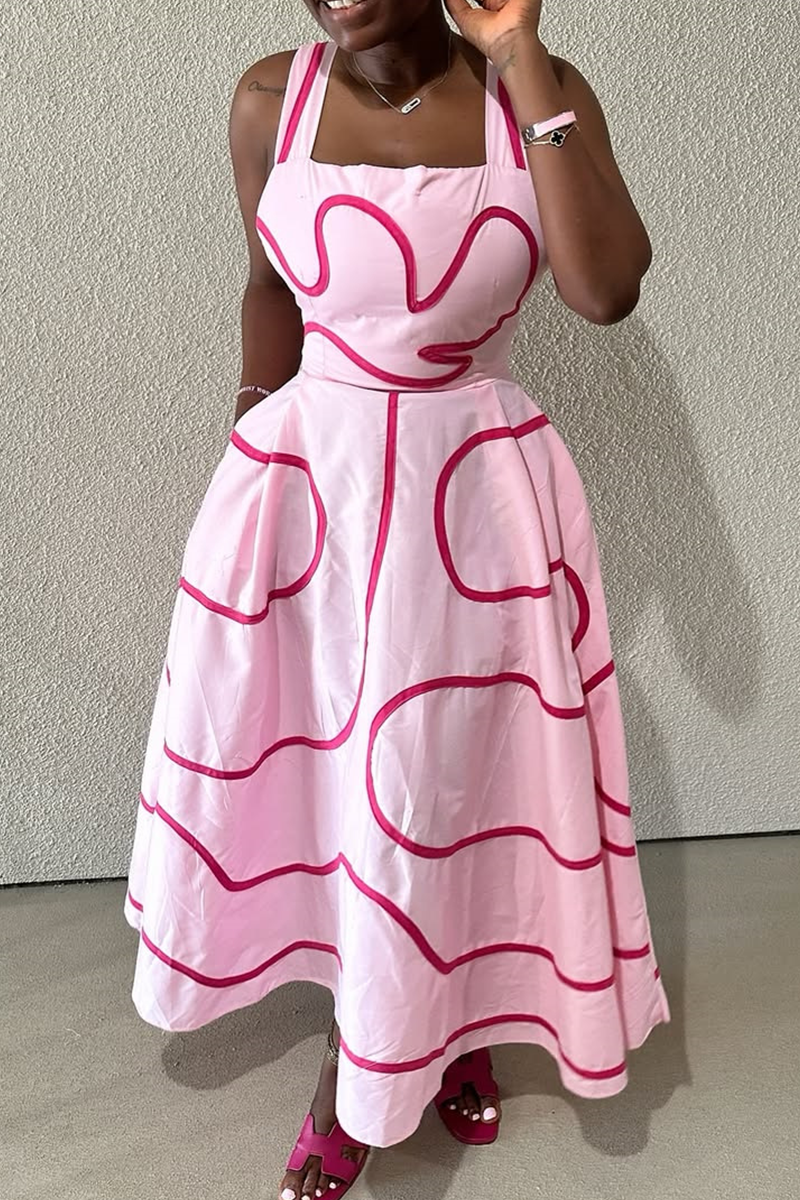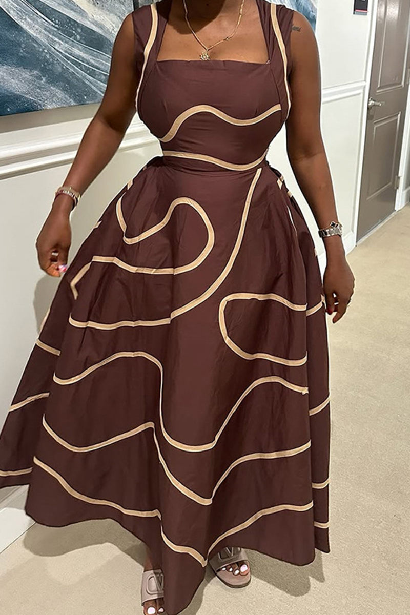Dark Brown Casual Print Pocket Square Neck Long Dresses