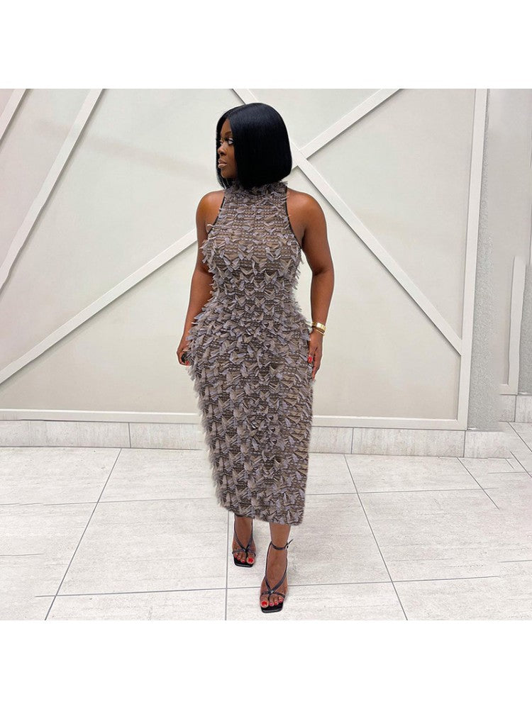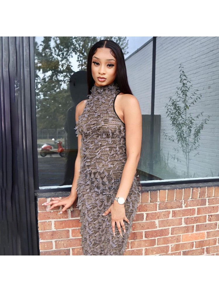 This Fringe Patchwork Fitted Sleeveless Maxi Dress is a must-have for any modern wardrobe! Crafted from high-quality textured Terylene, Polyester, Spandex and designed with comfort and style in mind, this piece offers a relaxed yet chic look. Crafted with soft, breathable and unique Patchwork, Pure Color, Plain Color, it ensures all-day ease while keeping you fashionable. Available in Khaki, Black, Blue, this affordable Sleeveless Dresses is perfect for staying on-trend without breaking the bank.