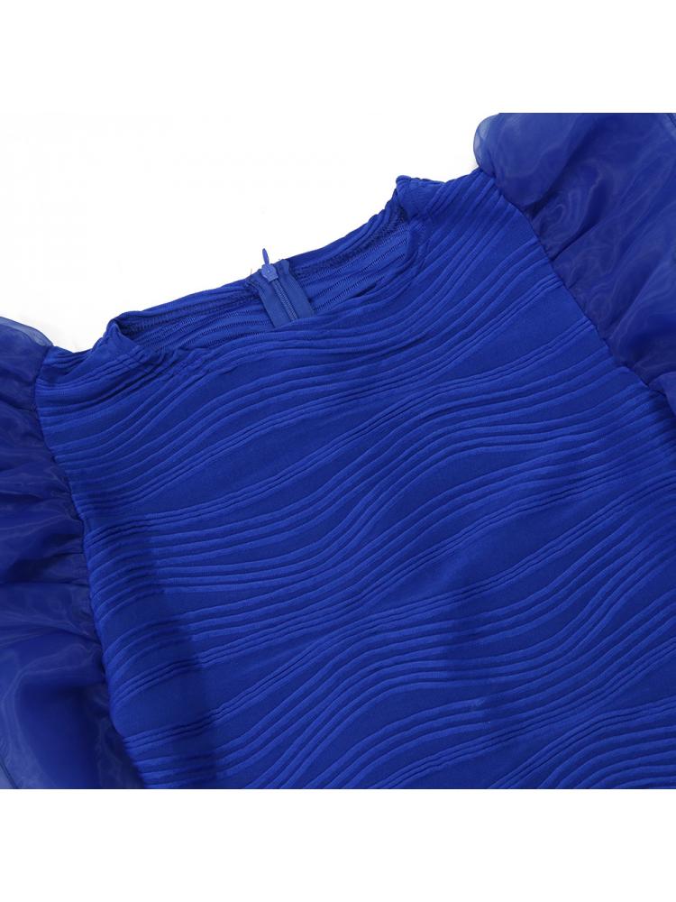 Patchwork Ruffle Frill Sleeve Midi Dress