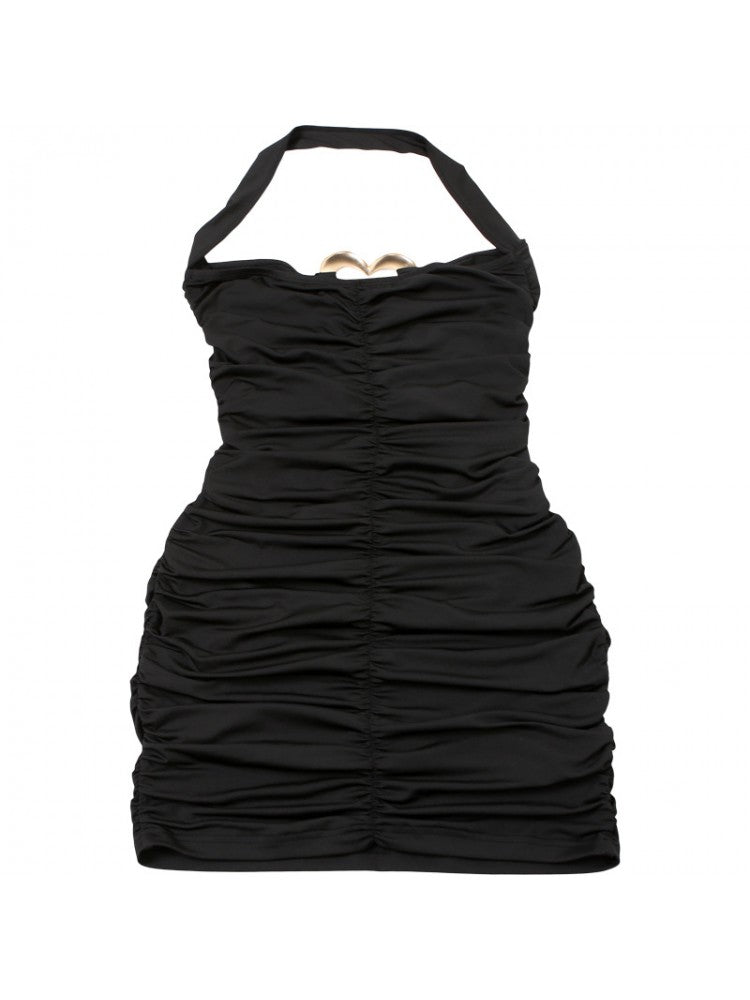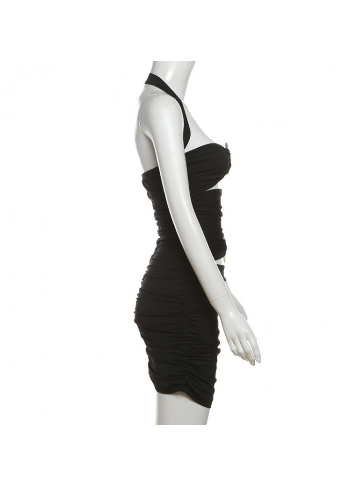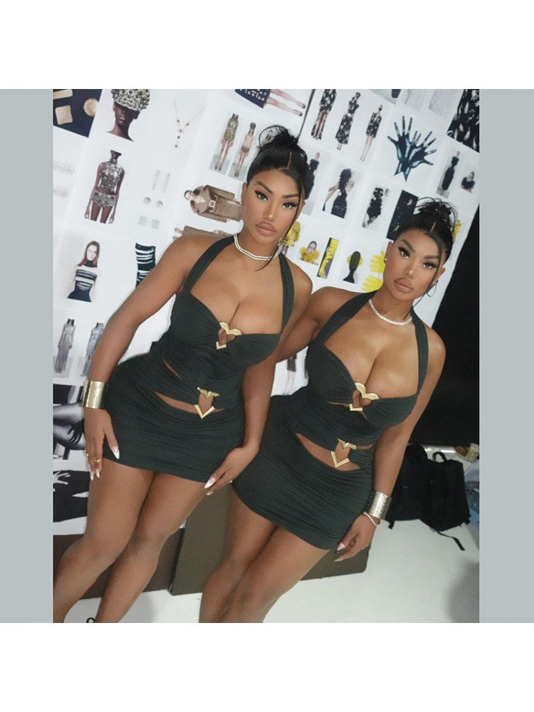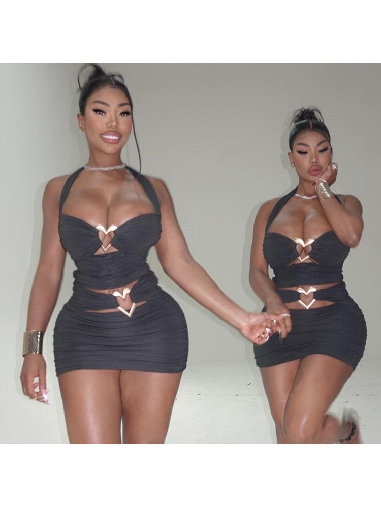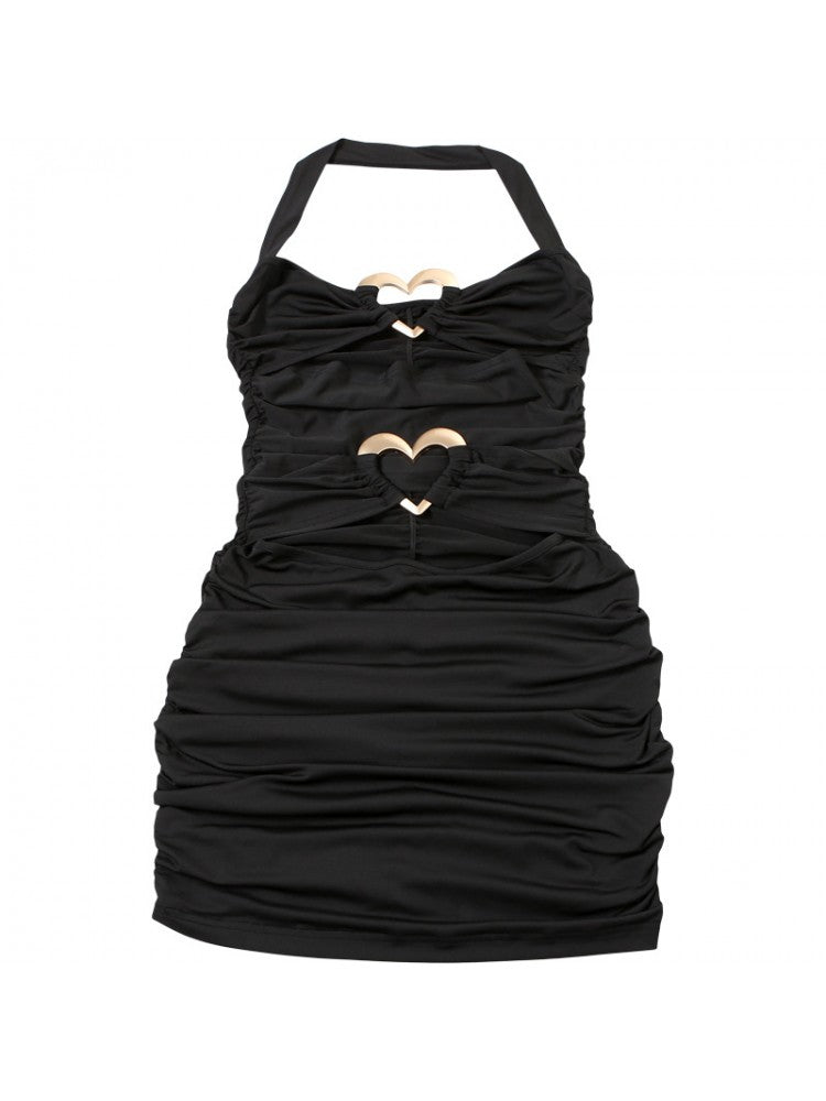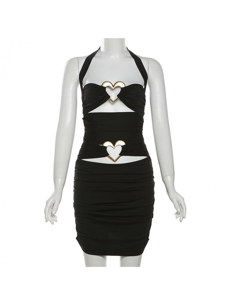 - Elements:: Halter,Heart,Metal Decor,Patchwork,Pure Color,Ruched,Plain Color,Pullover,Hollow-out