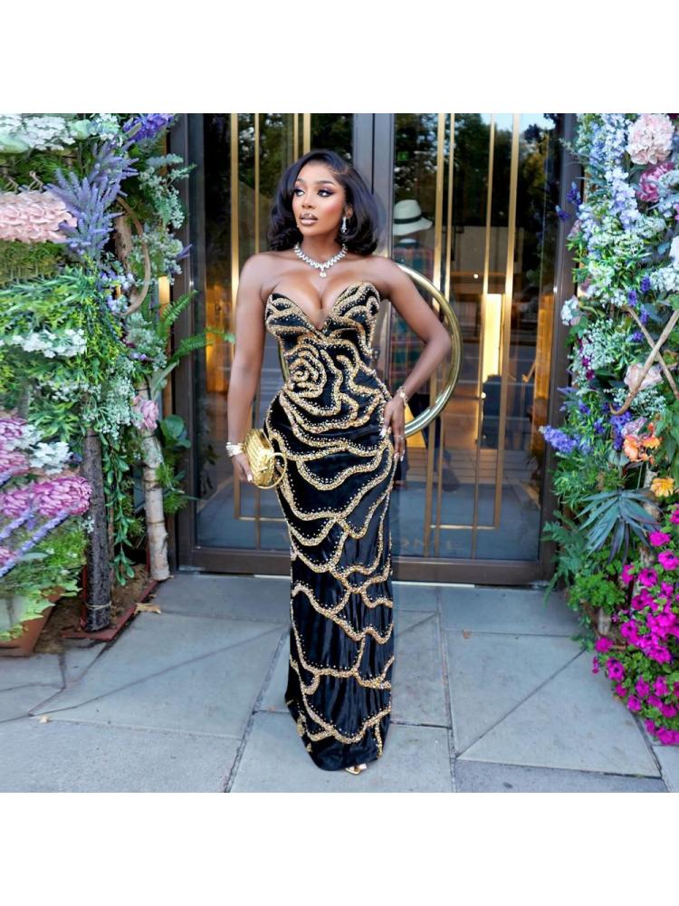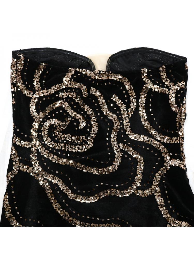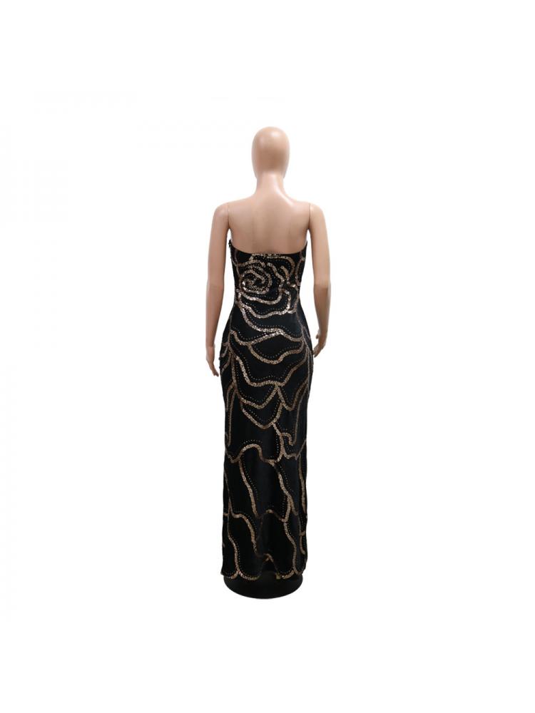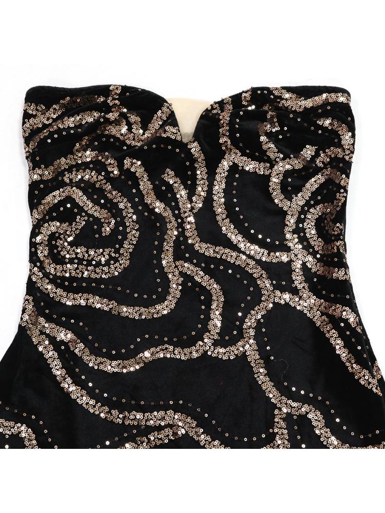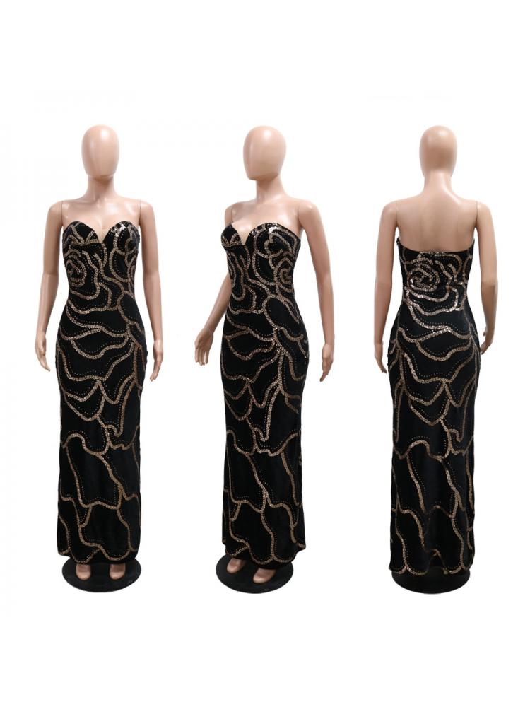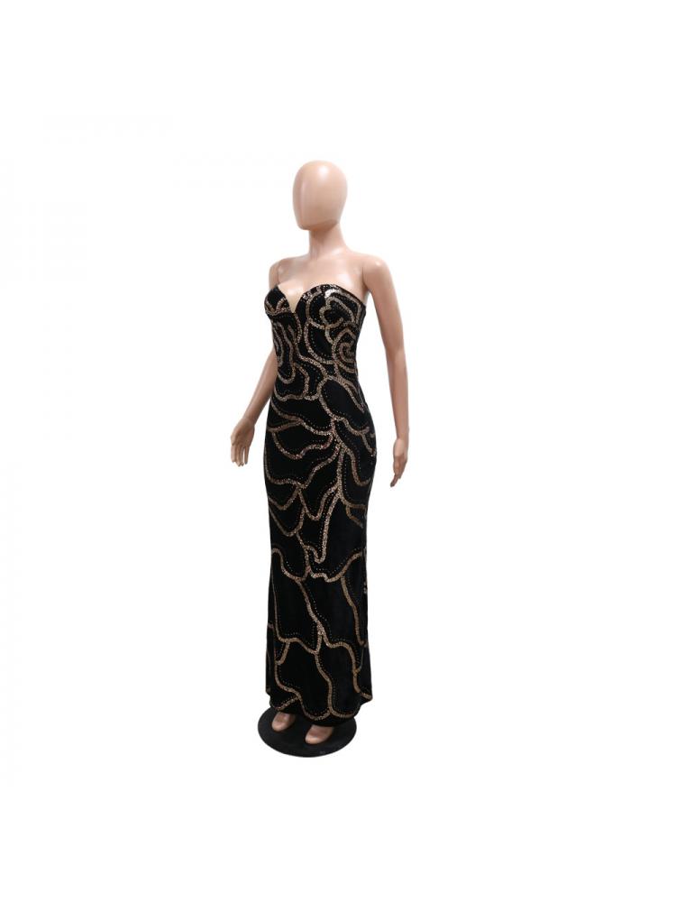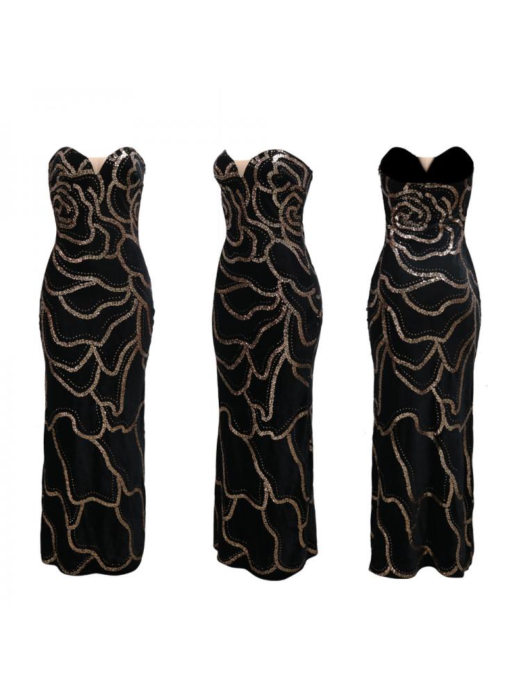 Sequin Strapless V Neck Fitted Maxi Dress