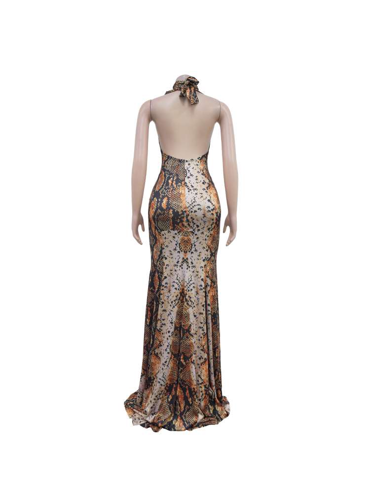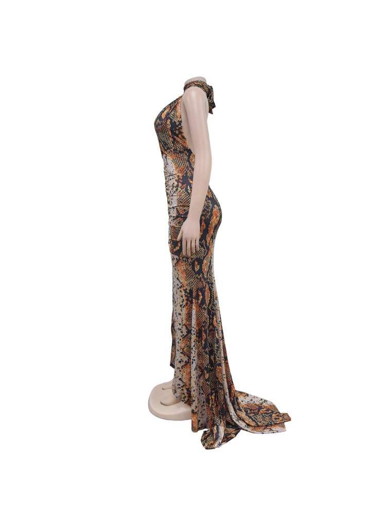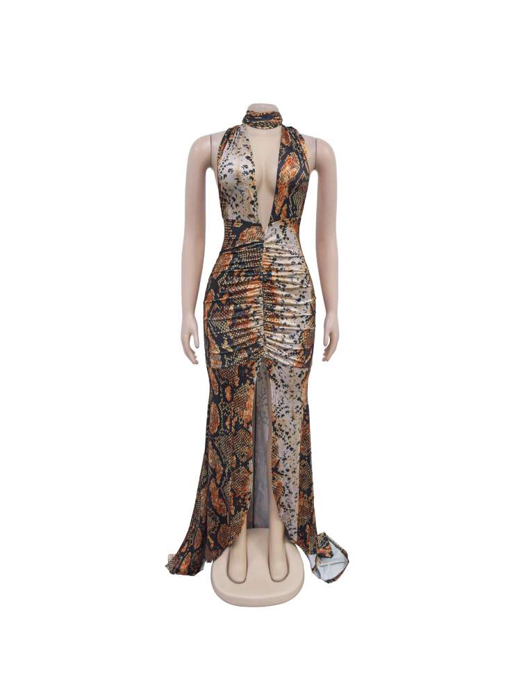 - Elements:: Halter,Lace Up,Patchwork,Ruched,Snake Print,Split Hem