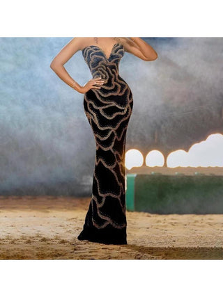 Sequin Strapless V Neck Fitted Maxi Dress