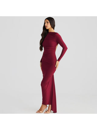Pullover Ruched Backless Long Sleeve Maxi Dress