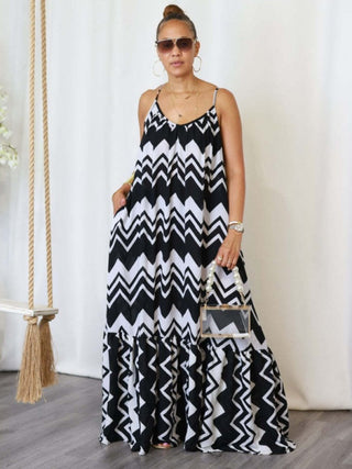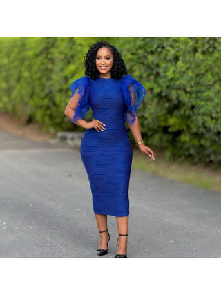 Patchwork Ruffle Frill Sleeve Midi Dress