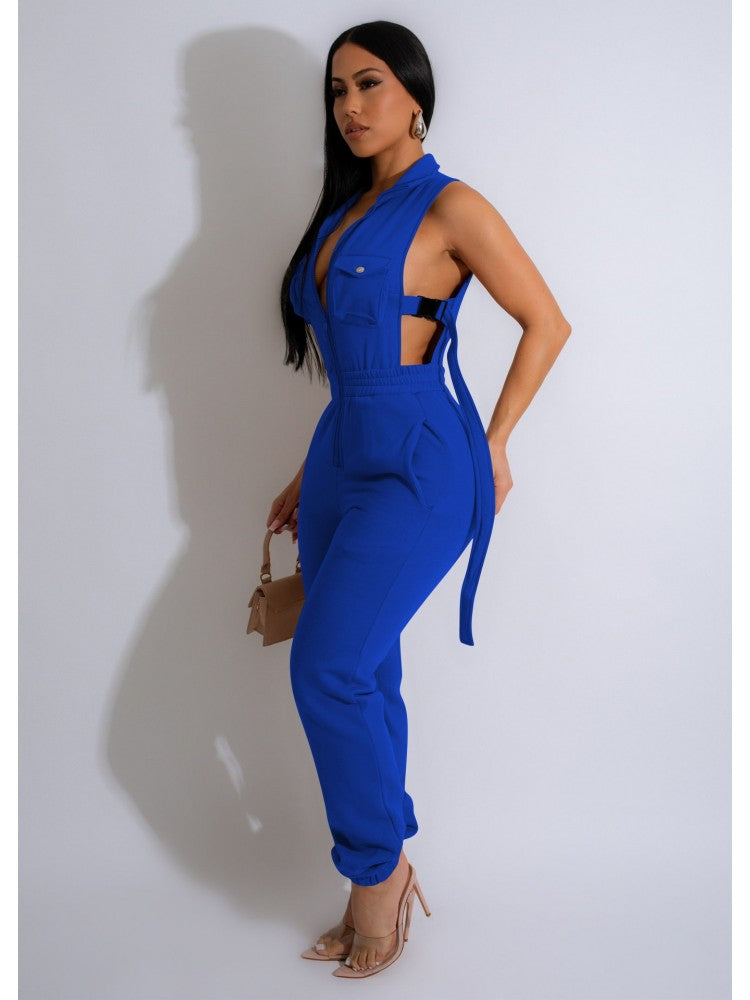 Multi Pocket Lace Up Cut Outs Fitted Jumpsuit