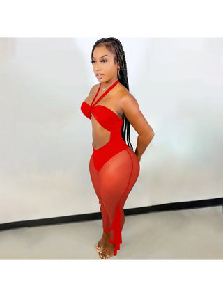 Sexy Solid Color Halter See Through Jumpsuit