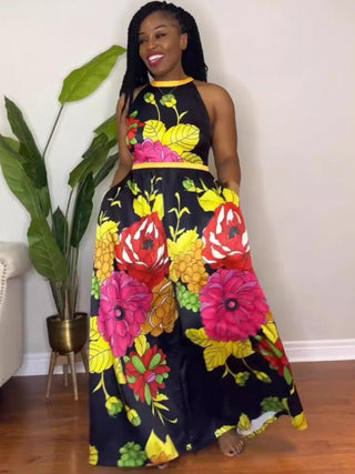 Colorblock Floral Sleeveless Wide Leg Jumpsuits