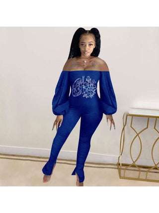 Floral Lantern Sleeve Off Shoulder Jumpsuits