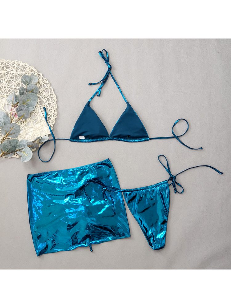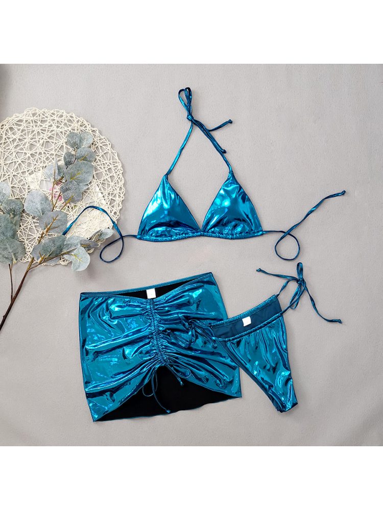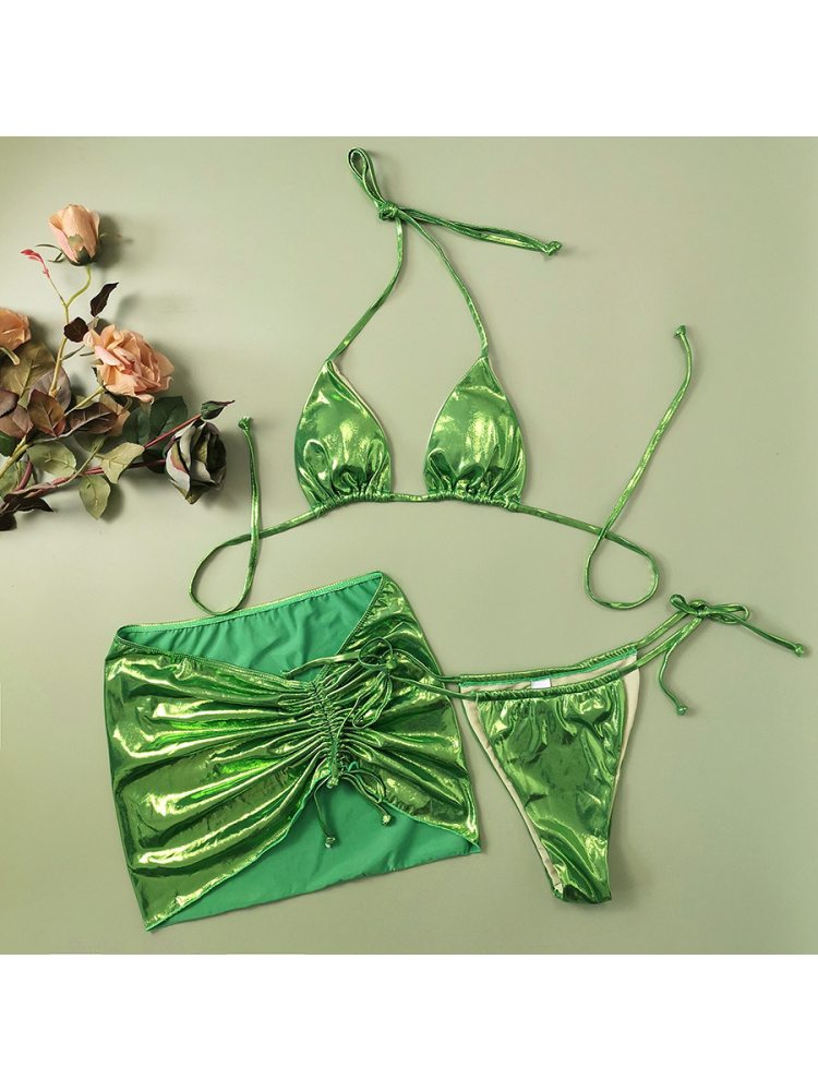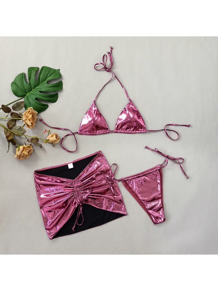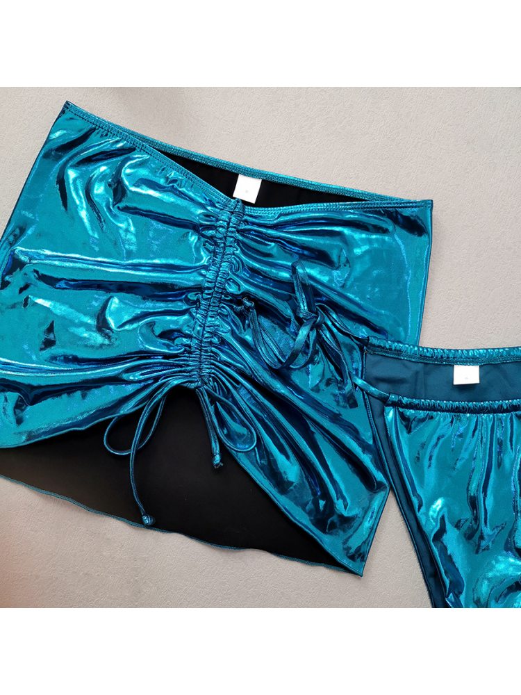 Drawstring Spaghetti Straps Backless Bikinis Sets