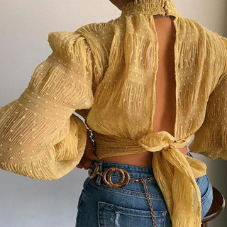 Women Lady's Tops Casual Female Shirt Blouse Ladies Flocking Hollow Tie Women's Summer Blouses & Shirts