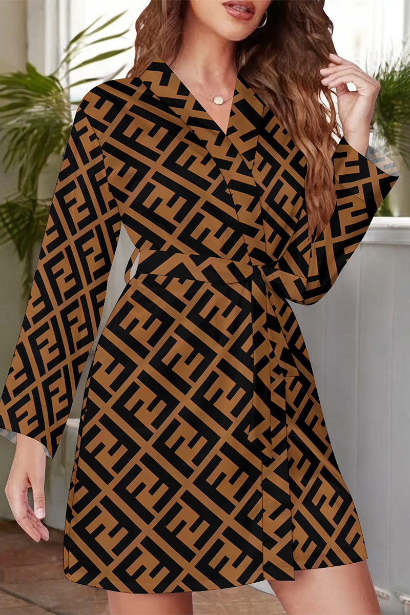 Coffee Sexy Letter Print Lace Up Contrast Sleepwear