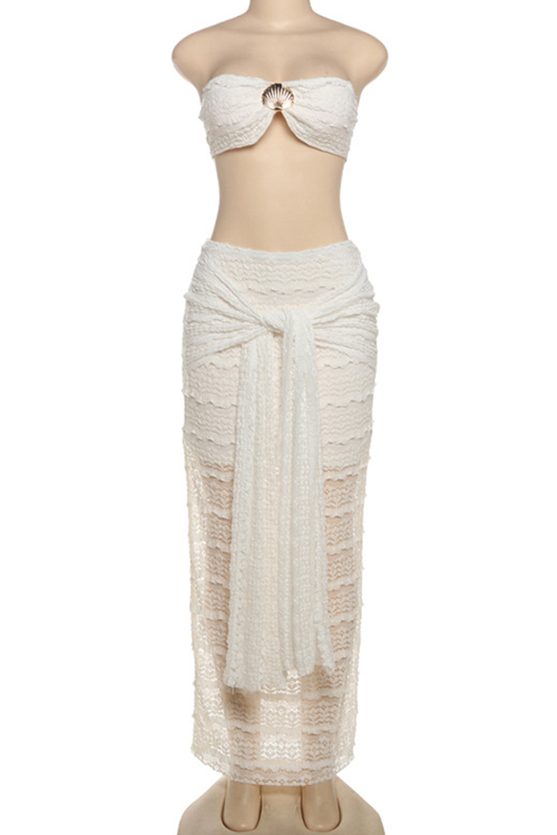 Green Sexy Solid Color Strap Design Strapless Sleeveless Two Pieces