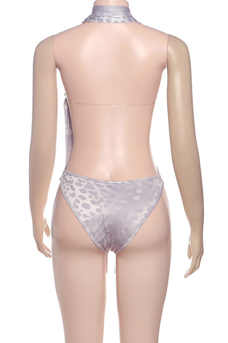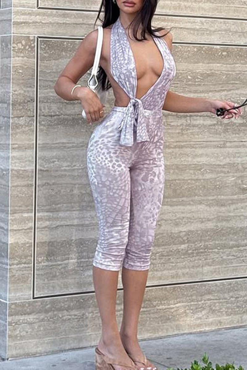 Purple Sexy Print Backless Deep V Neck Sleeveless Two Pieces