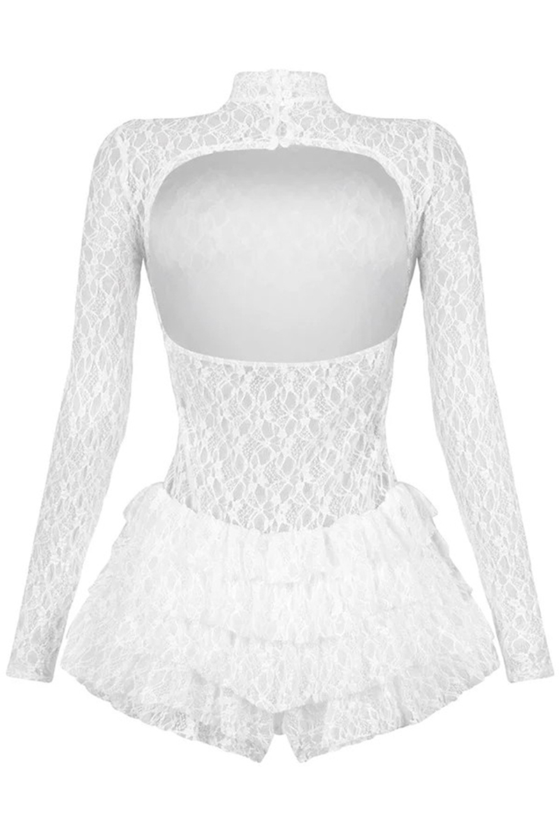 White Sexy Solid Color Backless O Neck Skinny Rompers