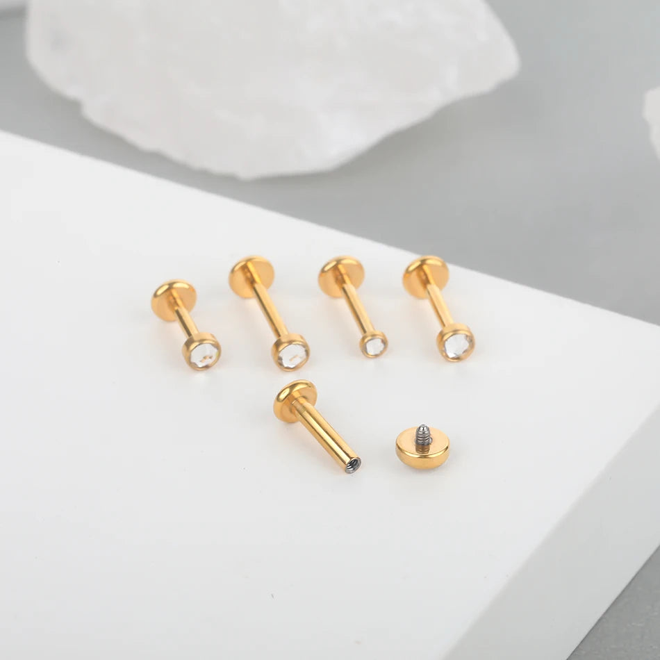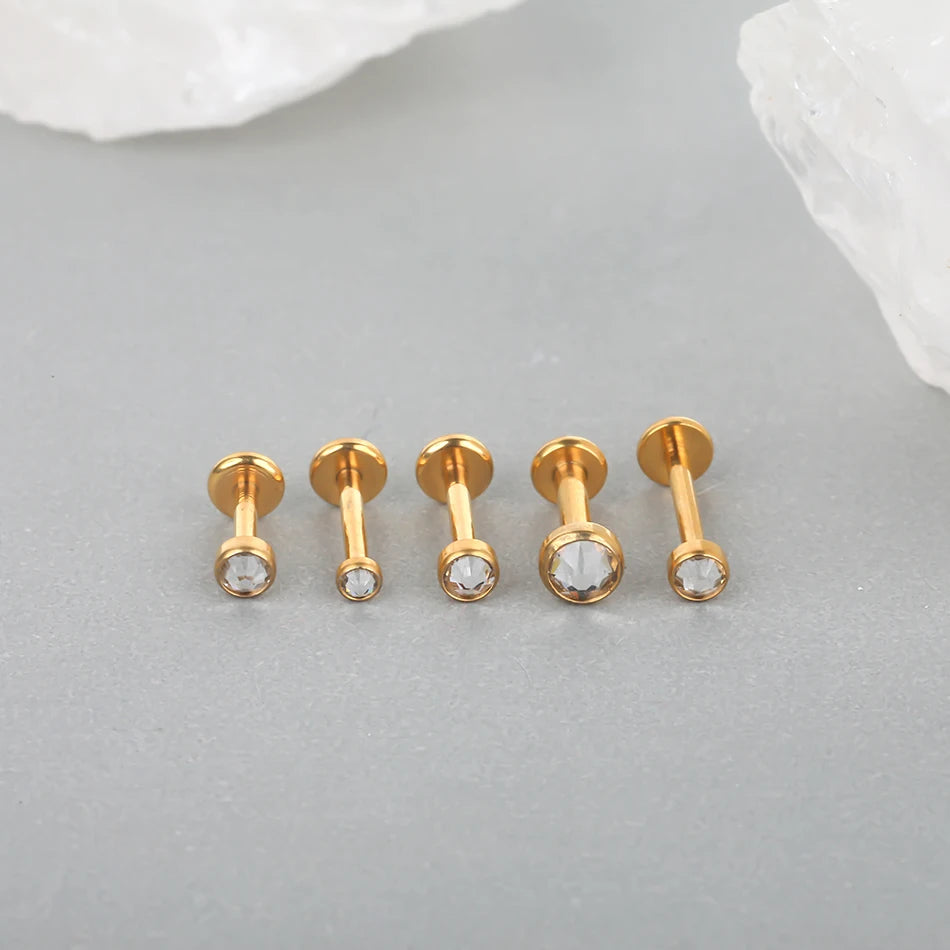 G23 Titanium Internally Threaded Labret Lip Monroe Rings 16G Earrings Stud CZ Gem Ear Cartilage Tragus Piercing Body Jewelry